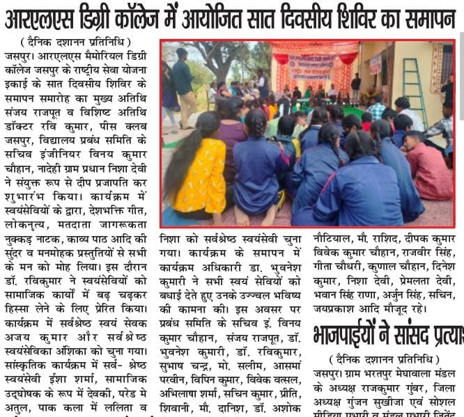 R L S Memorial Degree College, Kishanpur, Jaspur